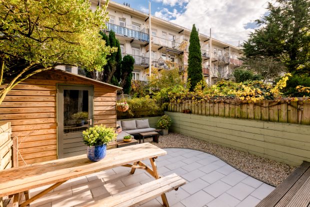 – Zonnige tuin van ca. 40 m² op het zuidoosten met berging van ca. 8 m²;