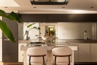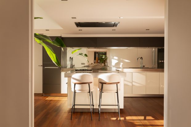 Keuken: Een op maat gemaakte, professioneel uitgeruste keuken met apparatuur van Miele en Wolf, waaronder meerdere ovens, een tepanyaki-plaat, warmhoudlade en quooker. De keuken is afsluitbaar en vormt het warme hart van de woning.