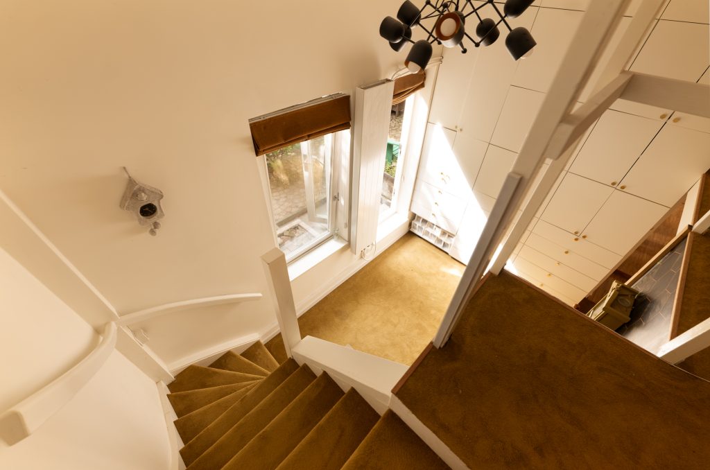 Een interne trap leidt naar het verrassend lichte souterrain, waar grote raampartijen zorgen voor een sterke verbinding met de tuin. Het souterrain telt twee royale kamers, beide direct grenzend aan de tuin. De ruime multifunctionele ruimte in het souterrain is nog volledig naar eigen inzicht in te richten en uit te bereiden.