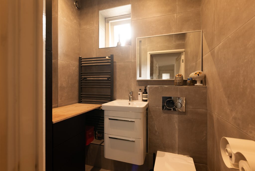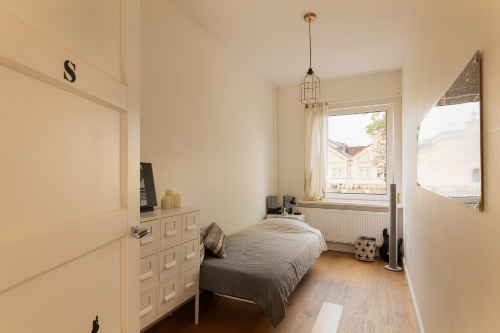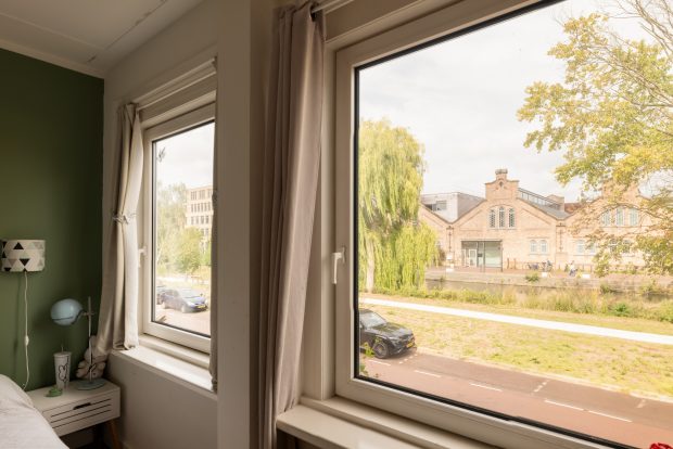 Aan de voorzijde bevinden zich twee lichte slaapkamers met uitzicht op de Ringvaart en de historische gevels van de voormalige Oostergasfabriek. Dit niveau vormt een volwaardig slaapverdieping waarin comfort en functionaliteit samenkomen.