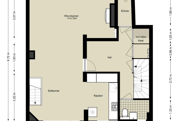 De Meetinstructie is gebaseerd op de NEN2580. De Meetinstructie is bedoeld om een meer eenduidige manier van meten toe te passen voor het geven van een indicatie van de gebruiksoppervlakte. De Meetinstructie sluit verschillen in meetuitkomsten niet volledig uit, door bijvoorbeeld interpretatieverschillen, afrondingen of beperkingen bij het uitvoeren van de meting. De oppervlakte kan derhalve afwijken van vergelijkbare panden en/of oude referenties. Wij benadrukken dat aan enig verschil tussen de opgegeven en de werkelijke grootte geen rechten kunnen worden ontleend. Indien de exacte maatvoering van belang is, raden wij aan de maten zelf te (laten) meten.