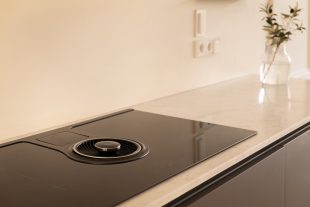 – Luxe keuken met marmeren blad en AEG-apparatuur;