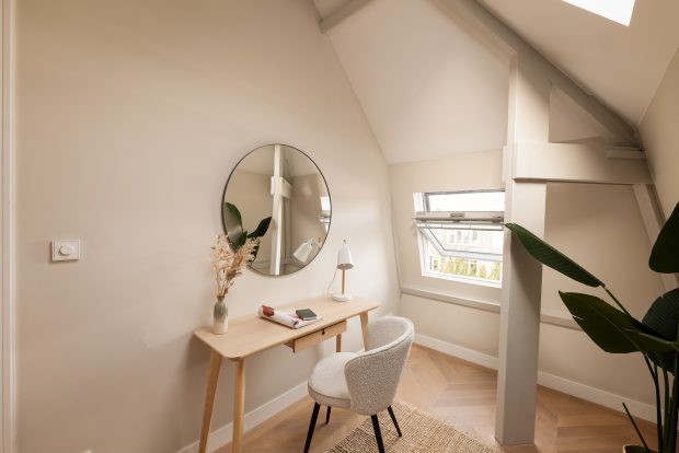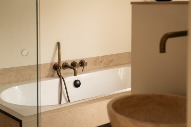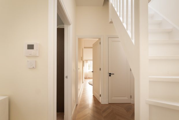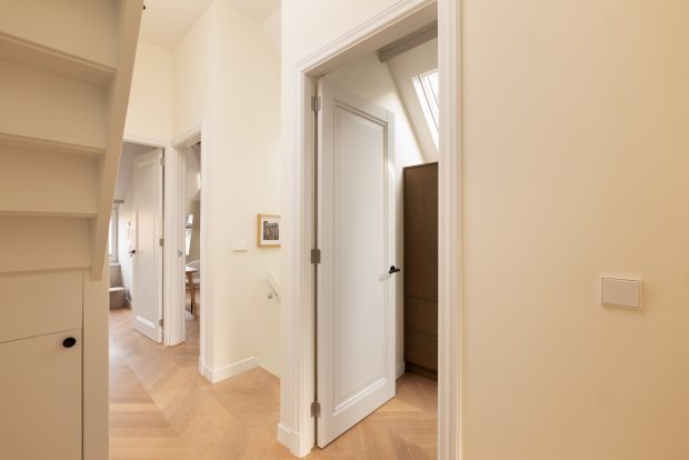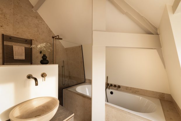 Op de derde verdieping bevinden zich vier goed bemeten slaapkamers, alle voorzien van airconditioning. De master bedroom beschikt over een en-suite badkamer met vrijstaand ligbad, inloop(regen)douche en dubbele wastafel, afgewerkt met natuursteen en messing Bongio-kranen. Daarnaast is er een tweede badkamer met inloopdouche, wastafel en separaat toilet. Slim geplaatste inbouwkasten en bergruimtes zorgen voor optimaal gebruiksgemak.