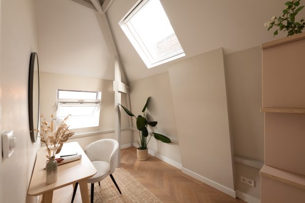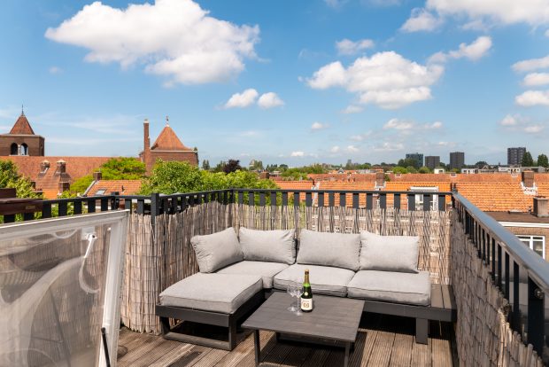 Via een vaste trap bereikt u het royale dakterras van circa 14 m², een privéplek met prachtig uitzicht over de stad.