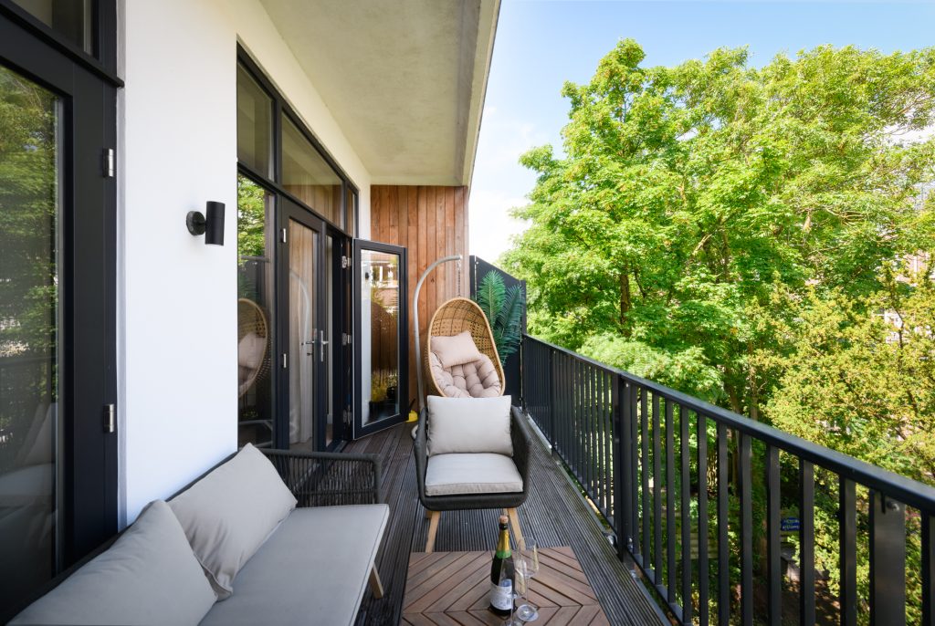 – Balkon (ca. 12 m²) en dakterras (ca. 14 m²);