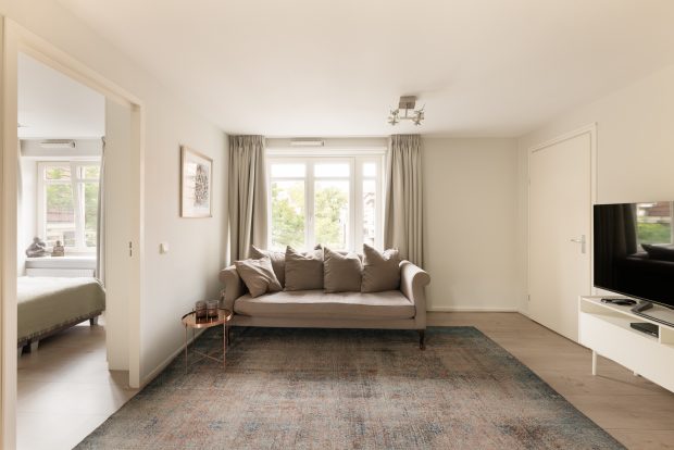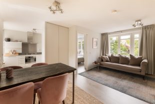 Betreed dit heerlijke appartement via het nette, gemeenschappelijke trappenhuis. De hal op de tweede verdieping geeft direct toegang tot de woonkamer, welke dankzij de grote ramen veel daglicht krijgt. De keuken (Bruynzeel) is voorzien van inbouwapparatuur.