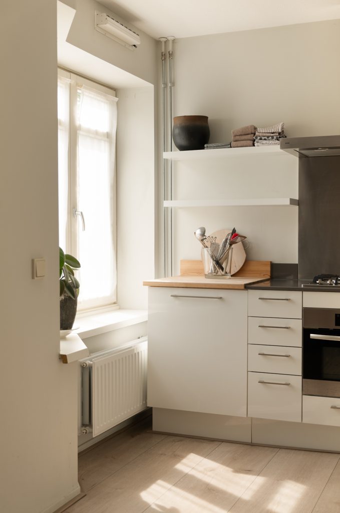De ruime slaapkamer is voorzien van praktische draaikiepramen en biedt volop comfort. Het gehele appartement is voorzien van een parketvloer. De moderne badkamer is slim ingedeeld en uitgerust met een inloopdouche, zwevend toilet en wastafel met spiegel. Dankzij het raam profiteer je van natuurlijke ventilatie en fijn licht. Naast de badkamer bevindt zich een handige bergkast met de aansluiting voor de wasmachine, de CV-ketel en de mechanische ventilatie.