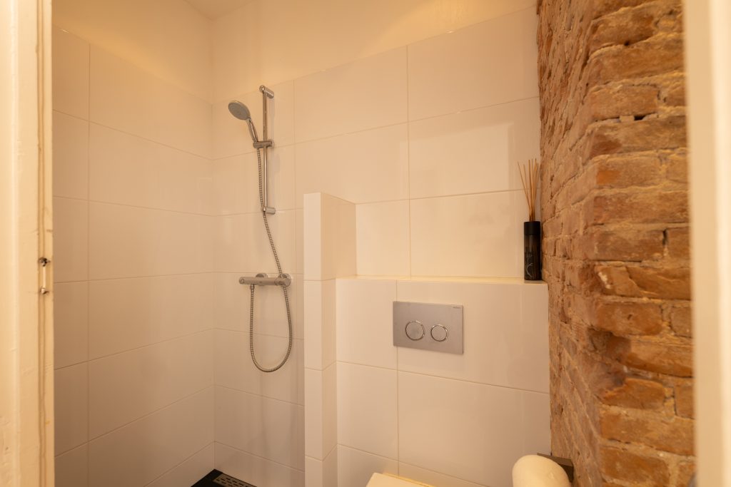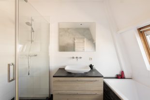 De woning beschikt over twee badkamers. De grote badkamer is modern en compleet uitgerust met vloerverwarming, ligbad, inloopdouche en wastafelmeubel. Daarnaast is er een tweede badkamer met douche, toilet en wastafel – ideaal voor gasten of een gezin.