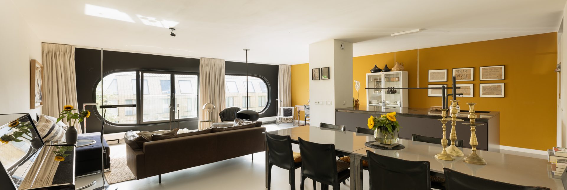 – Lichte woonkamer met open keuken en grote raampartijen;