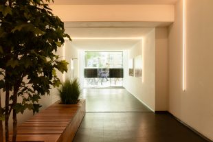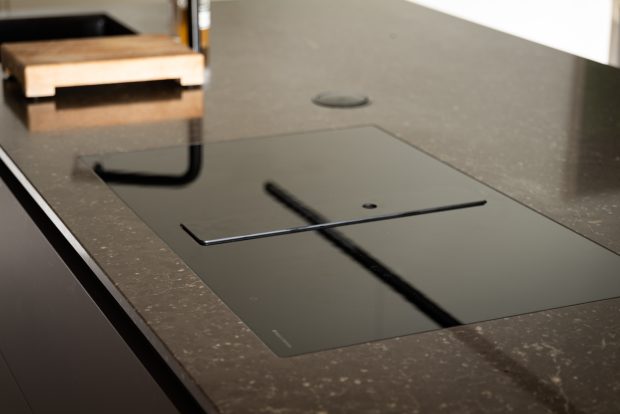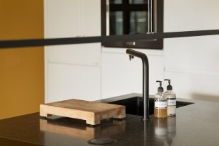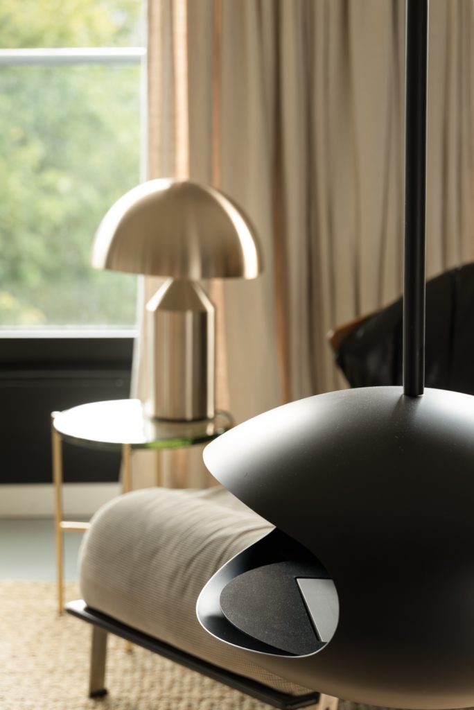 De centrale hal biedt toegang tot alle vertrekken en leidt naar de royale woonkamer met open keuken. De luxe keuken bestaande uit o.a. een groot kookeiland is afgewerkt met hoogwaardige materialen en beschikt over moderne inbouwapparatuur. De bijzondere grote, opvallende vormgegeven raampartij zorgt hier voor een overvloed aan natuurlijk licht en een open sfeer.