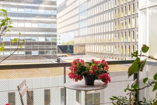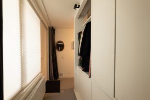 De zeer ruime slaapkamer bevindt zich aan de rustige achterzijde en beschikt over een gerenoveerde en met hoogwaardige materialen afgewerkte en-suite badkamer met inloopdouche en wastafel. Eveneens aan de achterzijde vind je het balkon gelegen op het Noordwesten, een fijne plek om te ontspannen in de avondzon.