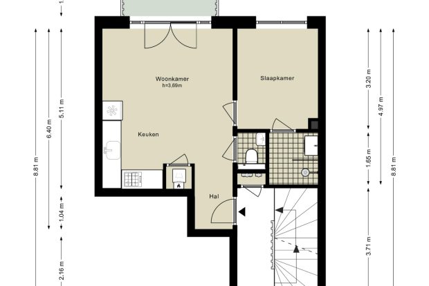 Deze woning is gemeten volgens de Meetinstructie. De Meetinstructie is gebaseerd op de NEN2580. De Meetinstructie is bedoeld om een meer eenduidige manier van meten toe te passen voor het geven van een indicatie van de gebruiksoppervlakte. De Meetinstructie sluit verschillen in meetuitkomsten niet volledig uit, door bijvoorbeeld interpretatieverschillen, afrondingen of beperkingen bij het uitvoeren van de meting. Hoewel wij de woning met veel zorg hebben opgemeten kan het zijn dat er verschillen zijn in de afmetingen. Noch verkoper noch de makelaar accepteert enige aansprakelijkheid voor deze verschillen. De maatvoeringen worden door ons gezien als zuiver indicatief. Indien de exacte maatvoering voor jou van belang is, raden wij jou aan de maten zelf te (laten) meten.