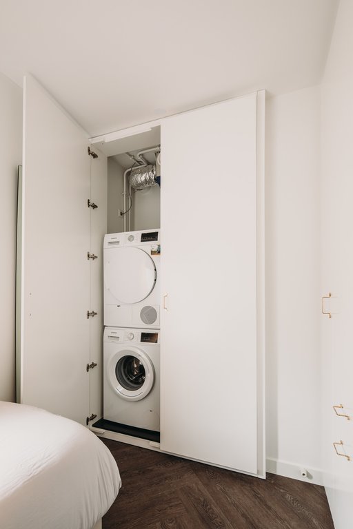 Dit high-end gemeubileerde 2-slaapkamerappartement van circa 65 m² straalt luxe uit dankzij het gebruik van kleuren en hoogwaardige materialen volgens de laatste woontrends. De open keuken is voorzien van inbouwapparatuur, inclusief vaatwasser, oven en koelkast met vriezer. Alle huishoudelijke apparaten, zoals Nespresso en juicer, zijn aanwezig. De luxe badkamer beschikt over een ligbad en inloopdouche. In de tweede slaapkamer met 1-persoonsbed zijn prachtige inbouwkasten gerealiseerd, inclusief wasmachine en wasdroger. Het appartement is gelegen in een luxe complex met lift en fietsenberging, waardoor u geniet van de luxe van een hotel met een huiselijk en comfortabel gevoel.