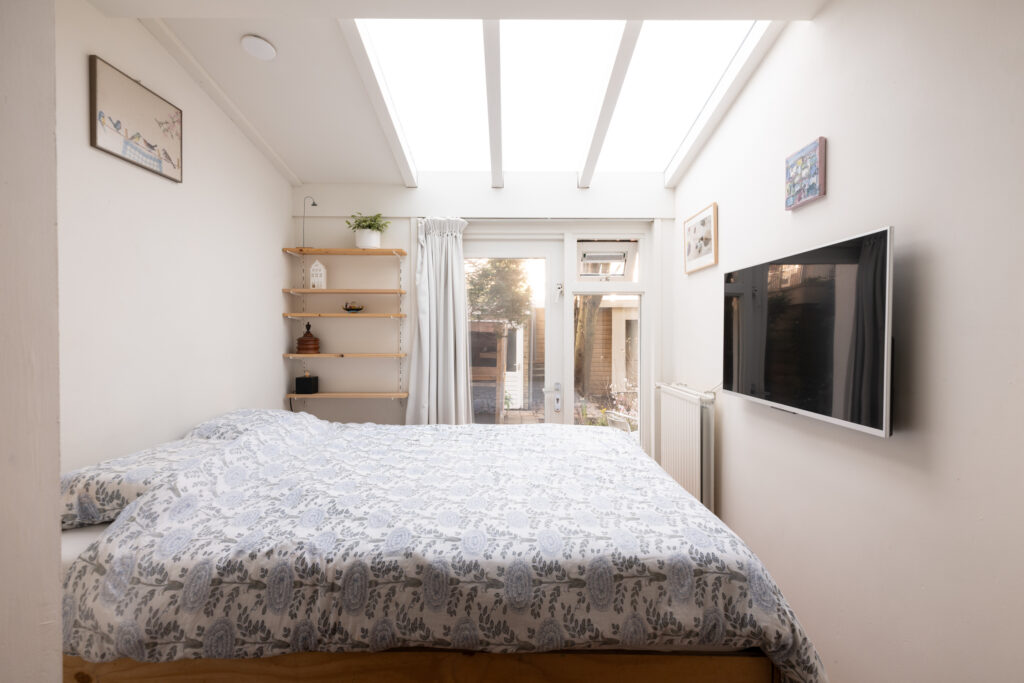 De woning is uitgebouwd aan de achterzijde en ligt in een rustige straat in de populaire Hoofddorppleinbuurt. Aan de voorzijde heb je zicht op het pleintje van de Woestduinstraat en alle voorzieningen zijn op loopafstand. Veel groen, winkels en uitgaansgelegenheden. Een gewilde locatie die goed bereikbaar is met zowel de auto als het openbaar vervoer. Ook het Vondelpark is op een paar minuten fietsafstand.