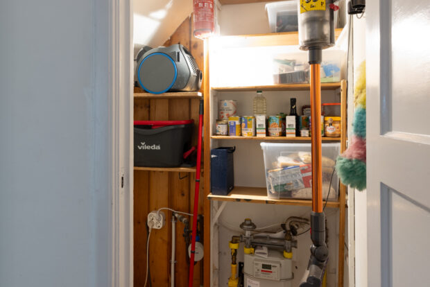 Entree/ tochthal, ruime hal met toegang tot de twee kinderslaapkamers aan de voorzijde. De woonkamer met de woonkeuken zijn gelegen aan de tuinzijde en geven toegang tot de tuin. In de tuin is een berging en een geluidsdichte “studio/ muziekruimte”. De grote slaapkamer ligt ook aan de achterzijde van de woning.