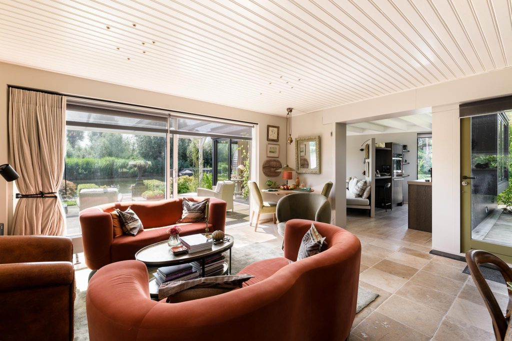 De ruime woonkamer heeft twee zit gedeelten met beide weids uitzicht en toegang tot het grote terras welke geheel elektrisch te overkappen is.