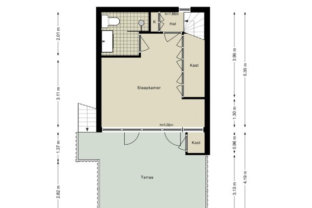 Deze woning is gemeten volgens de Meetinstructie. De Meetinstructie is gebaseerd op de NEN2580. De Meetinstructie is bedoeld om een meer eenduidige manier van meten toe te passen voor het geven van een indicatie van de gebruiksoppervlakte. De Meetinstructie sluit verschillen in meetuitkomsten niet volledig uit, door bijvoorbeeld interpretatieverschillen, afrondingen of beperkingen bij het uitvoeren van de meting. Hoewel wij de woning met veel zorg hebben opgemeten kan het zijn dat er verschillen zijn in de afmetingen. Noch verkoper noch de makelaar accepteert enige aansprakelijkheid voor deze verschillen. De maatvoeringen worden door ons gezien als zuiver indicatief. Indien de exacte maatvoering voor jou van belang is, raden wij jou aan de maten zelf te (laten) meten.